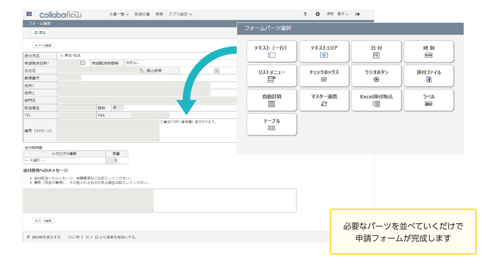 コラボフローの使い方はかんたんです。2ステップであっというまに社内ワークフローシステムが完成します。