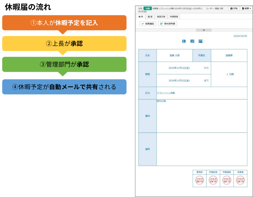 テンプレート集に「C0024休暇届」としてフォームを掲載しています。 - インポート時、インポート非対応のため未設定となる箇所があります。