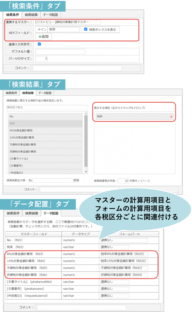 課税対象別集計用のマスターを、コラボフローに設定します。 - フォーム設定
